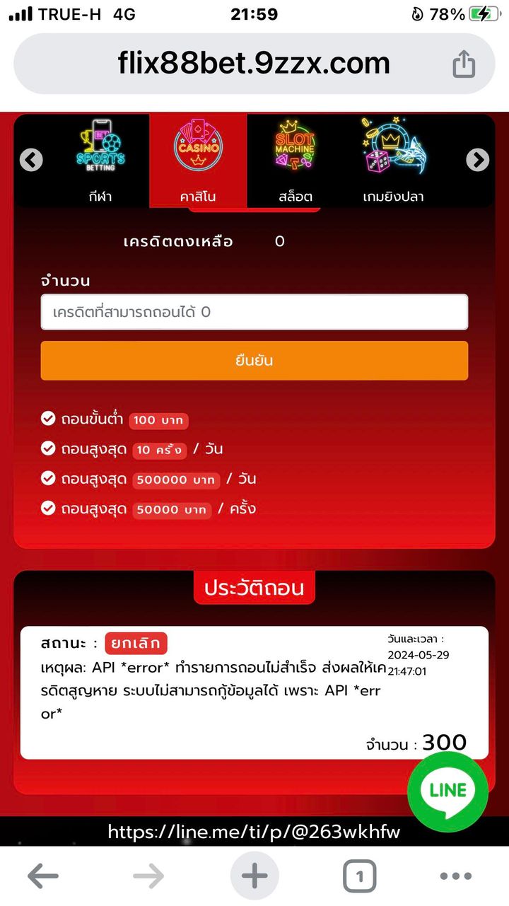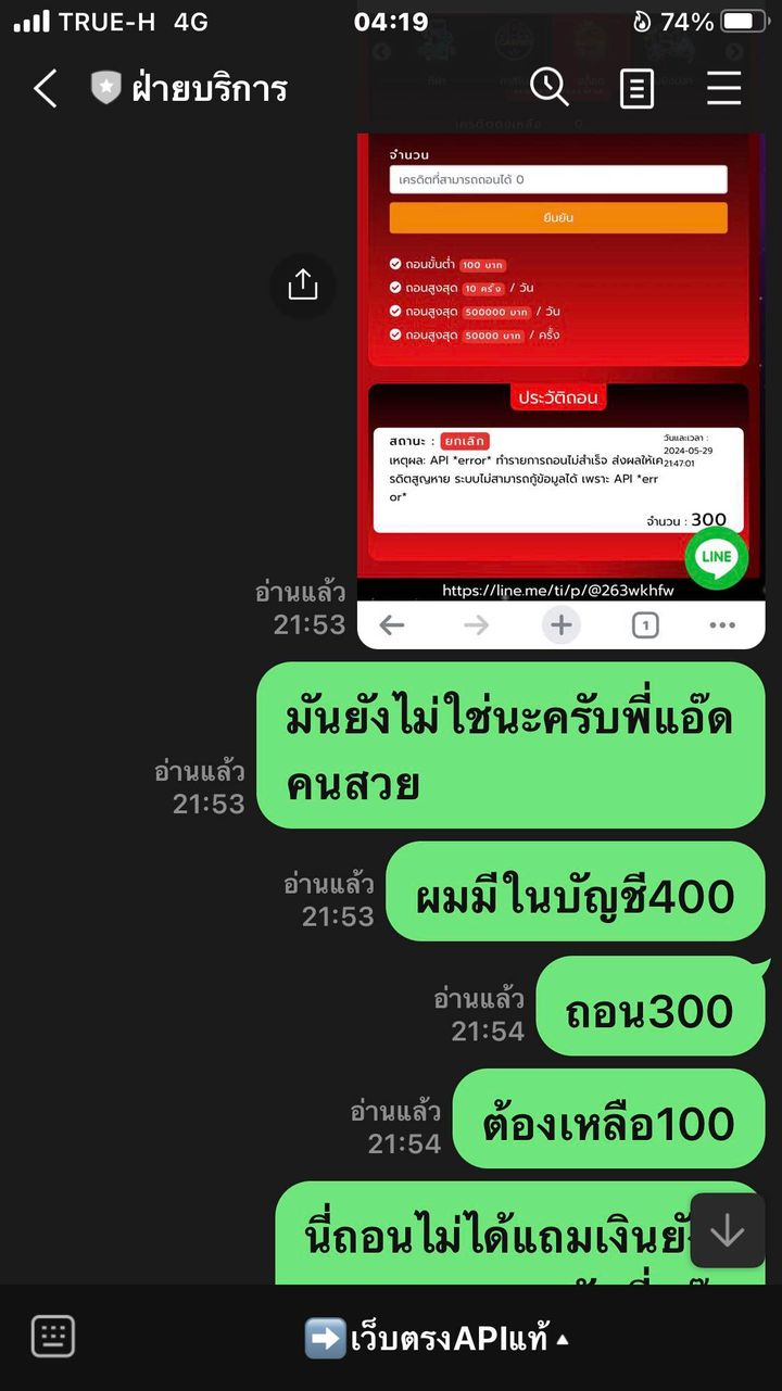 รายละเอียดของการโกง : ลูกค้าถอนยอด 400 บาท ไม่ถอนให้ลูกค้า ไม่อ่านไลน์