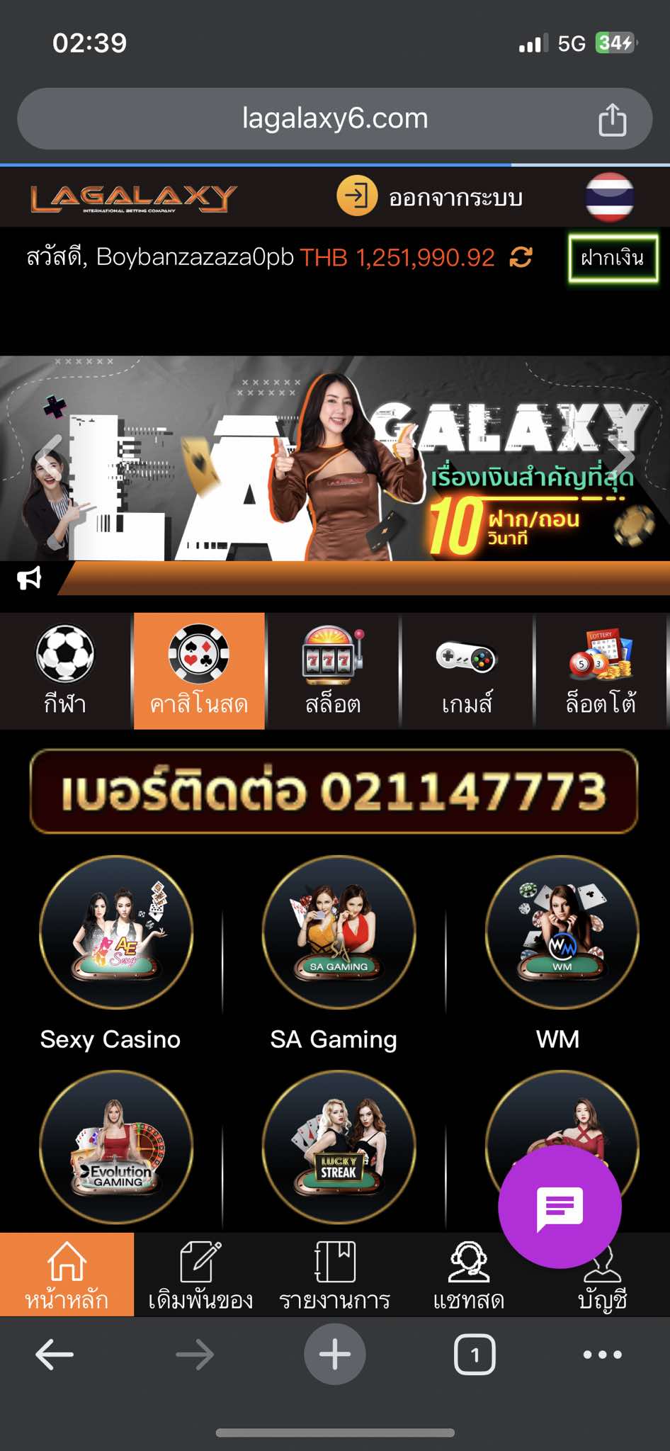 รายละเอียดของการโกง : ประจานเว็บโกง Lagalaxy ลูกค้าเล่นบาบวกหลักล้าน ถอนไม่ได้ เยอะด้วยโดน 2.2ล้าน ยับๆเลย เว็บLagalaxy 01 หรือ 06 เว็ปที่เสี่ยโป้เคยโปรโมทแต่ก่อน ทุน 650,000 หายเลย