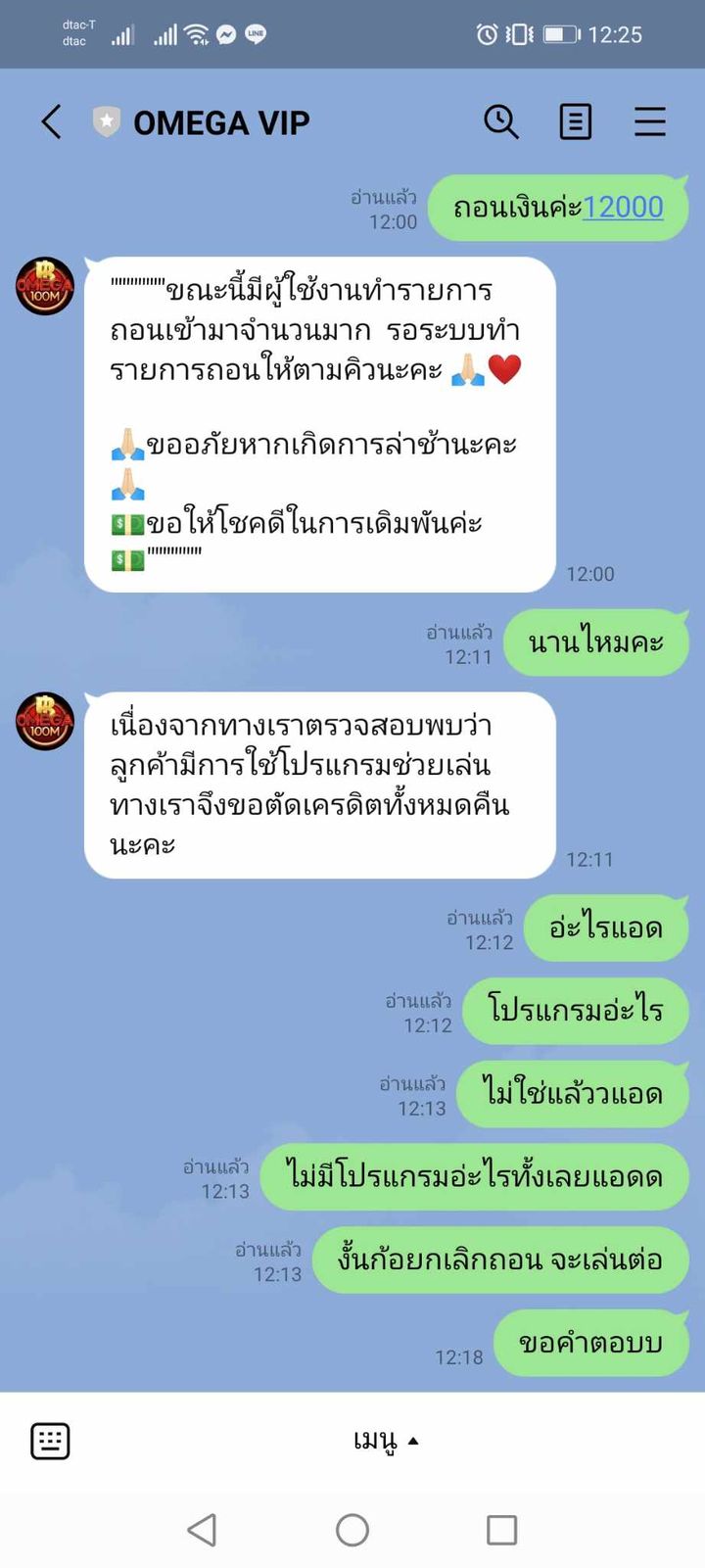รายละเอียดของการโกง : ลูกค้าถอนยอด 12,000 บาท ไม่ถอนให้ลูกค้า อ่านไลน์ไม่ตอบ